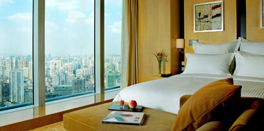 Measuring 120 – 125 sq m (1,292 – 1,345 sq ft) with a King or Hollywood twin beds, the Grand Deluxe Suite enjoys separate living and dining areas with a fireplace, a dressing room, deluxe marble bathroom, executive writing desk, guest powder room and panoramic views of the former British Consulate gardens, the Bund and the Huangpu River. The suite can also connect to a Deluxe Room for added convenience.